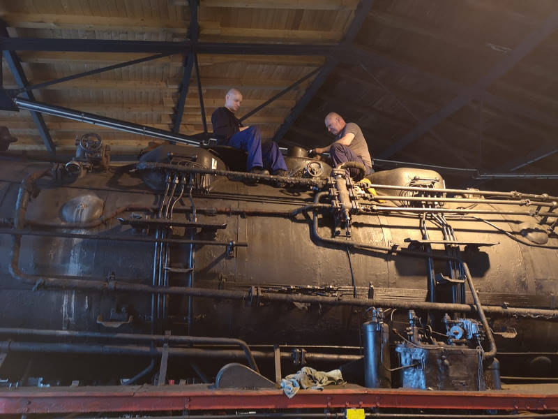 Dann wurde die Lok aus dem Schuppen gezogen und alle Schmierstellen wurden abgeölt