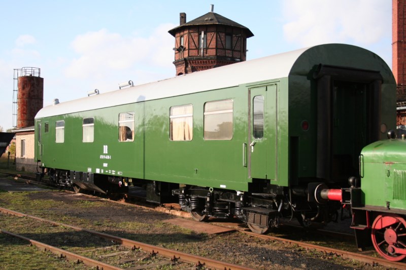 Der Begleiterwagen musste für ein paar Stunden den Reparaturstand verlassen, um dem Pwg Platz zu machen und war daher erstmals nach dem Neuanstrich außerhalb des Schuppens zu sehen.